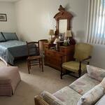 This fully furnished house has good curb appeal and a welcoming front porch. It was built in 1986 and sits on a lot measuring 6,525 sq ft. The house is 1,248 sq ft. There are two bedrooms and two bathrooms, and the laundry is in the one car garage. Many improvements have been made in the last two years, including new kitchen appliances, a sink with a reverse osmoses system and new garbage disposal. Many other updates throughout the house including laminate flooring, new ceiling fans, new front door, storm door, shutters and a new ridge cap on the roof. There is a good size patio in the back of the house and two sheds.